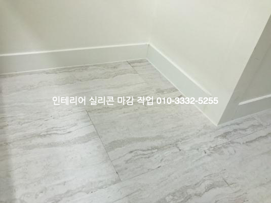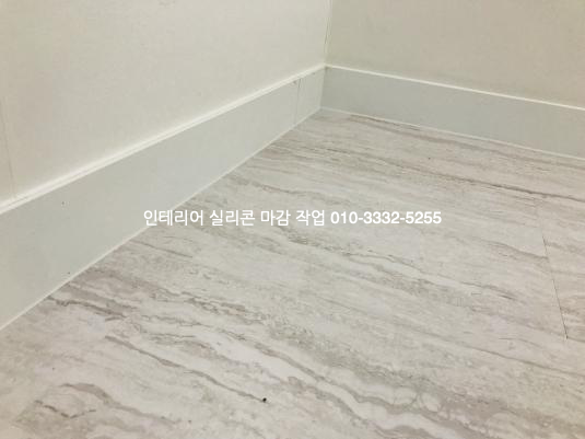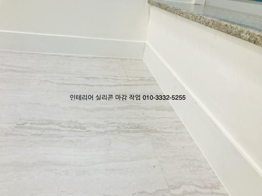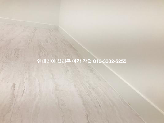 걸레받이와 바닥 데코타일이 만나는 모서리 부분은 백색 실리콘으로 코킹
