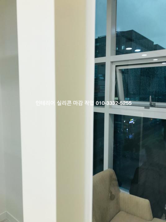 사무실 인테리어가 끝난 뒤 실리콘 마감 작업 사진입니다.
