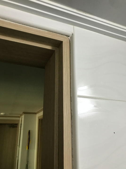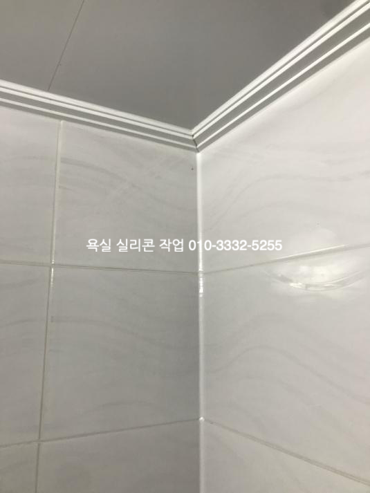 천정 몰딩과 타일이 만나는 곳, 타일 벽 모서리 실리콘 코킹