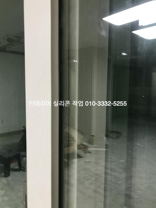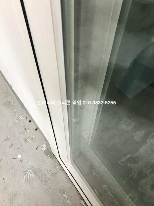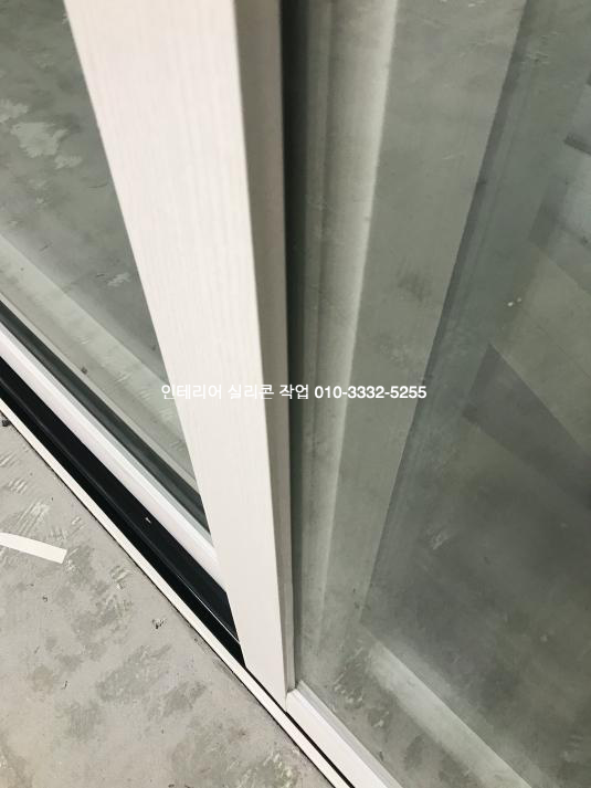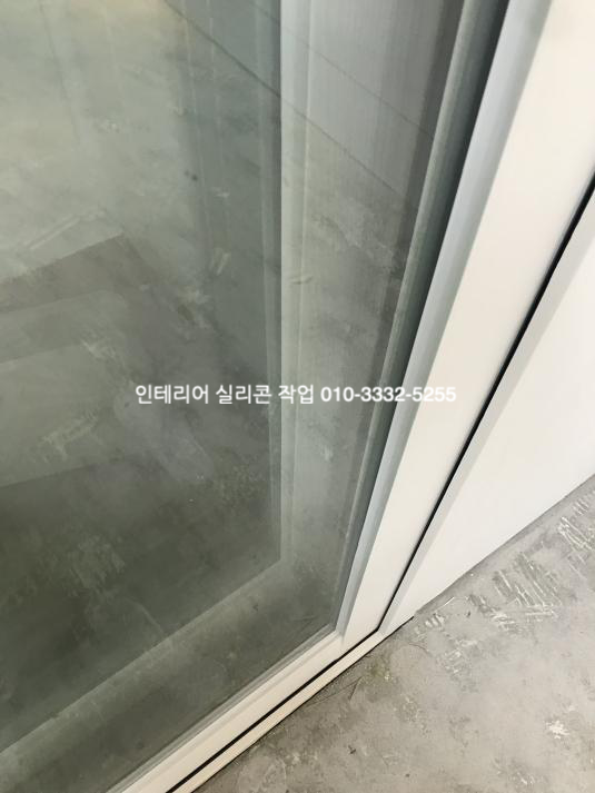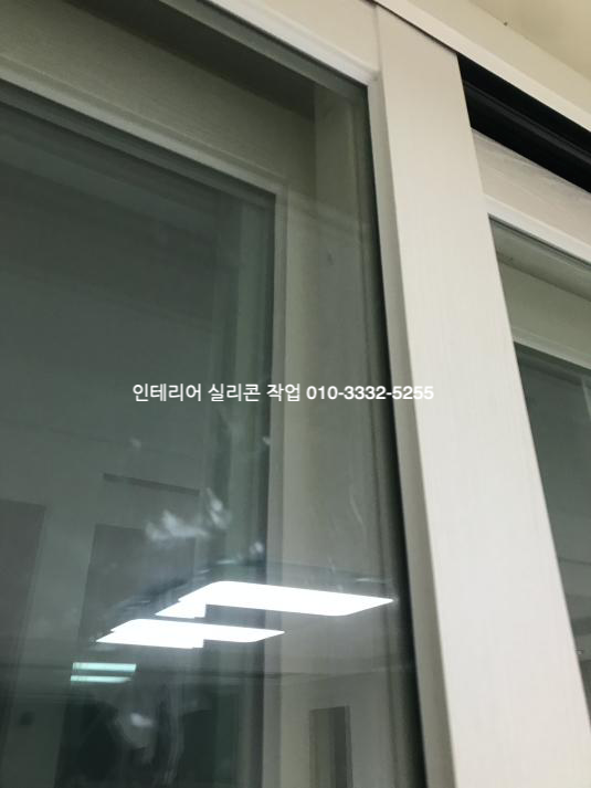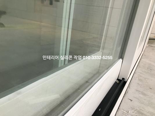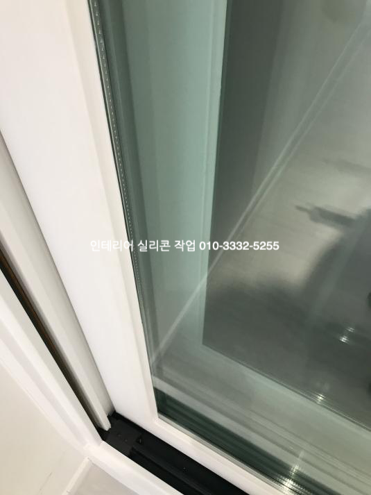 01. 아파트 창틀 내부 인테리어 필름지 작업이 끝나고 유리 실리콘 작업 사진입니다.