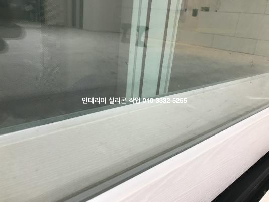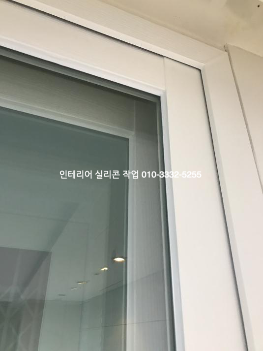 01. 아파트 창틀 내부 인테리어 필름지 작업이 끝나고 유리 실리콘 작업 사진입니다.