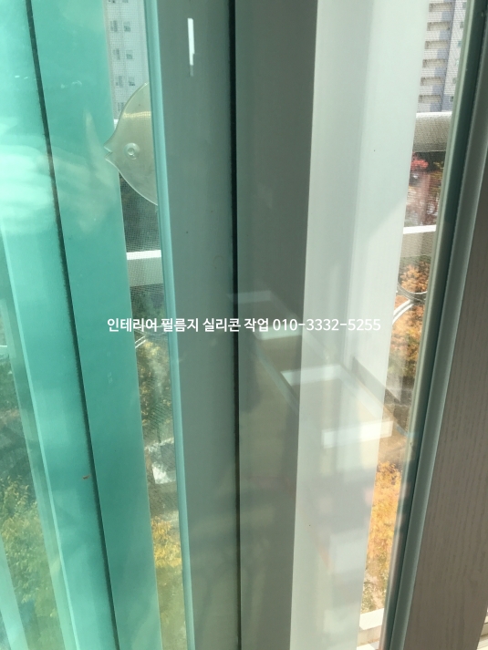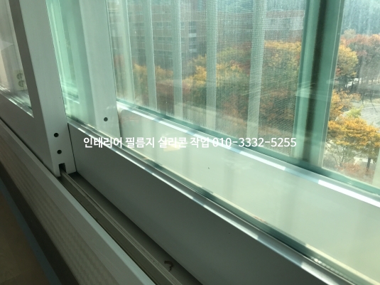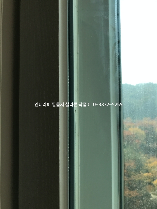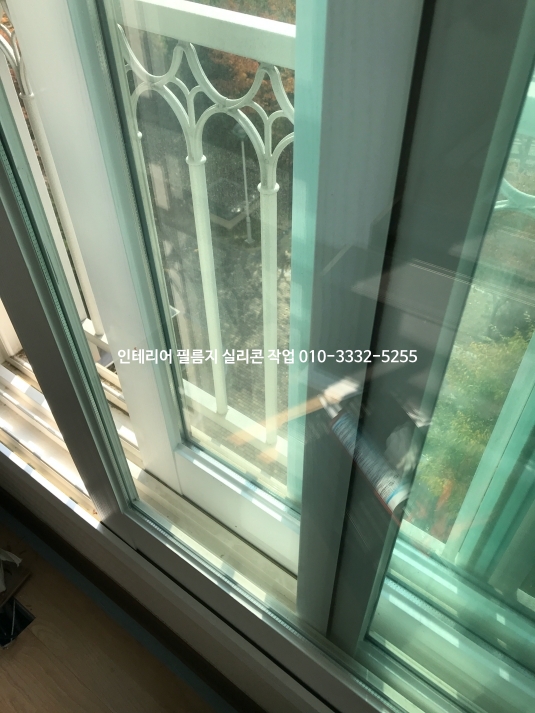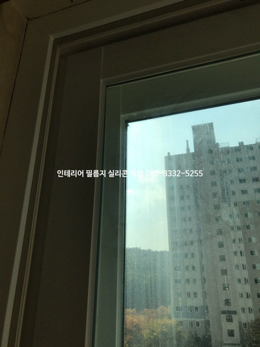 아파트 창틀 인테리어 필름지 실리콘 유리 실리콘 작업