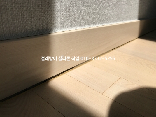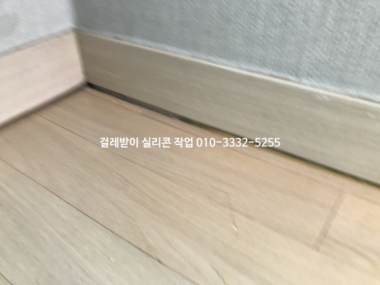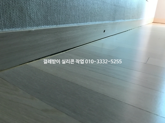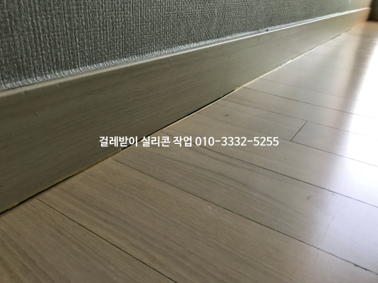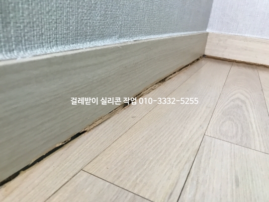 시간이 지나면서 걸레받이와 마루 바닥 실리콘이 떨어지고 갈라져 틈이 생겼습니다.
