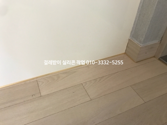 틈 간격에 맞춰 거실, 방, 주방 마룻바닥 테두리 전체 실리콘 작업한 사진입니다.