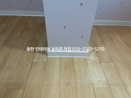 걸레받이, 마루 바닥이 만나는 틈 사이 실리콘 작업 사진
