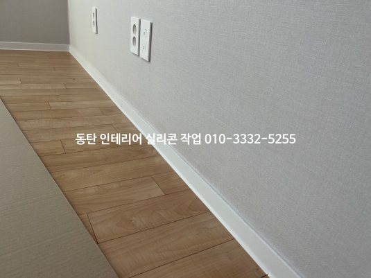 걸레받이, 마루 바닥이 만나는 틈 사이 실리콘 작업 사진