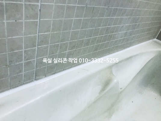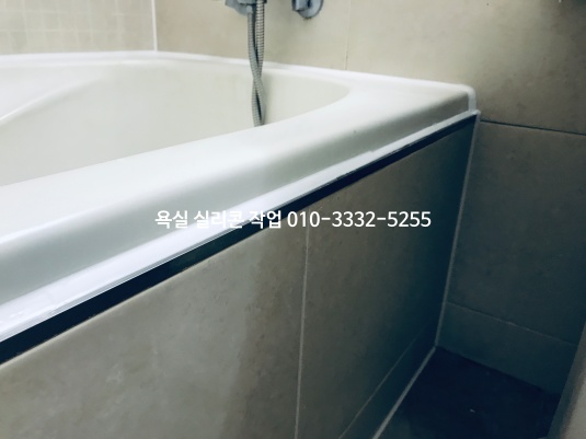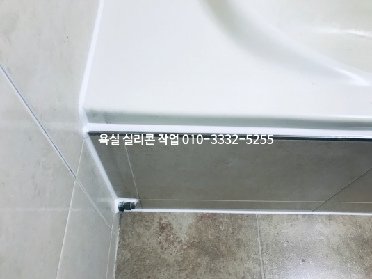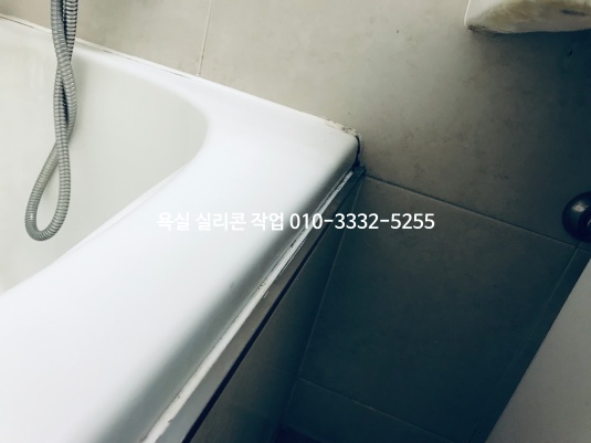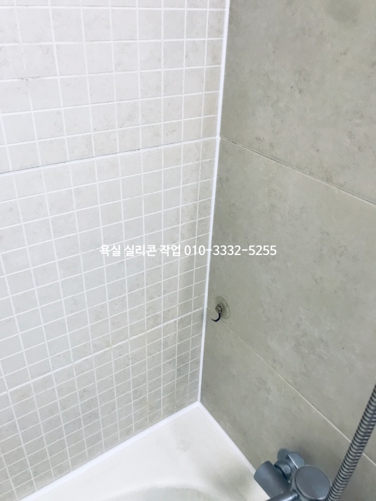 욕실 바이오 실리콘으로 타일이 만나는 모서리, 욕조 실리콘 작업한 사진입니다.