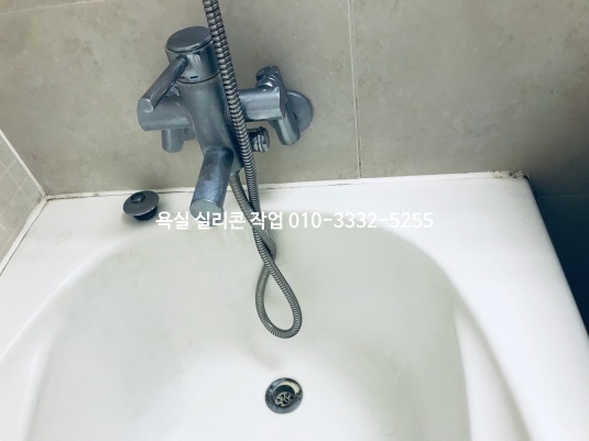 시간이 지나면서 욕조 실리콘이 들뜨고 떨어져 틈이 생기고 곰팡이가 생겼습니다.