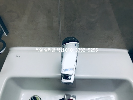실리콘 제거하고 세면기 실리콘 마감한 사진입니다.