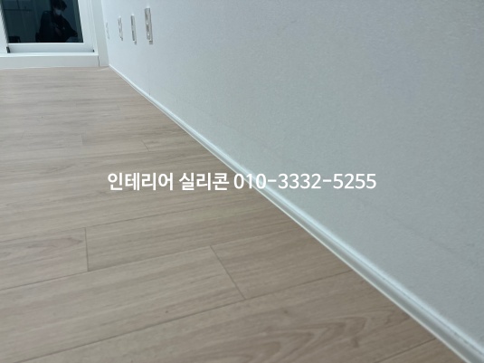 거실, 방, 주방 마룻 바닥과 걸레받이가 만나는 곳 실리콘 작업하고...