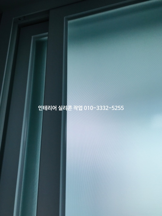 백색 실리콘으로 유리 실리콘 작업한 사진입니다.