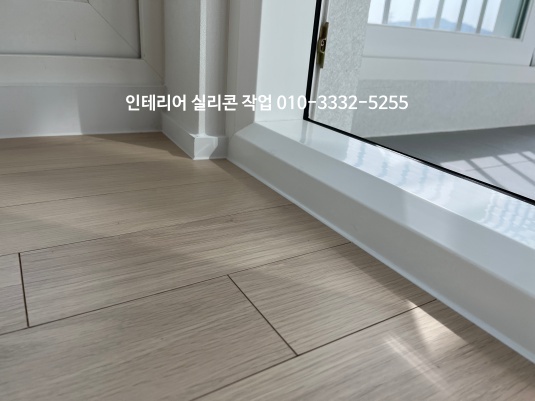 방 문틀, 강마루 백색 실리콘 시공 사진