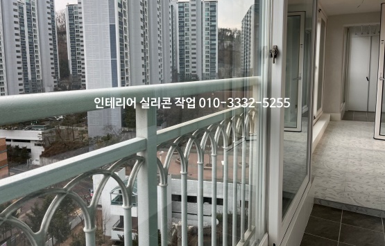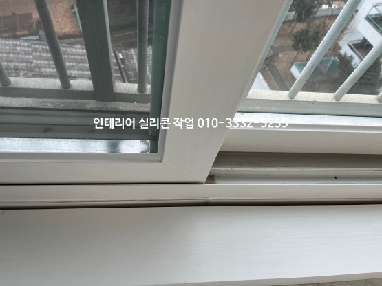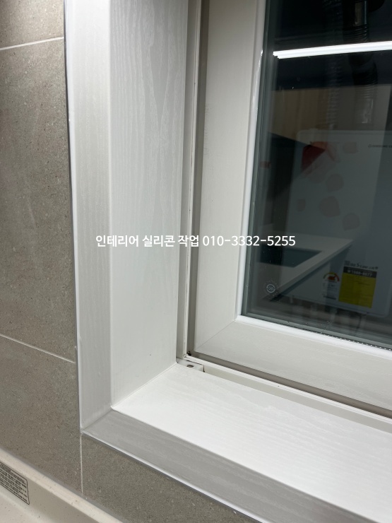 거실, 발코니, 방, 주방에 있는 창틀과 유리 모서리 실리콘 마감 작업한 사진