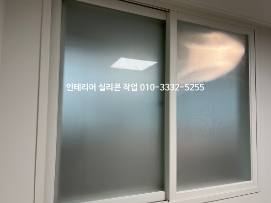 인테리어 필름지 시공이 되어 있는 샤시 유리 실리콘 작업을 의뢰해주셨습니다.