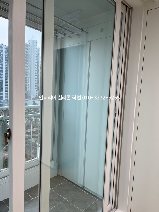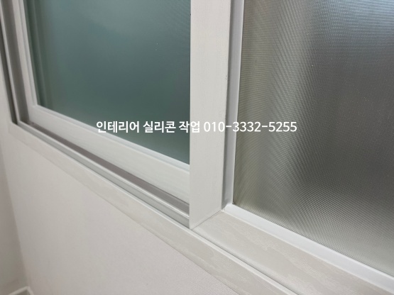 인테리어 필름지 시공이 되어 있는 샤시 유리 실리콘 작업을 의뢰해주셨습니다.