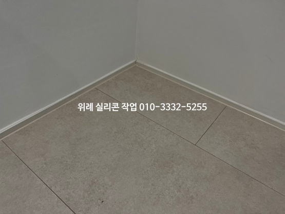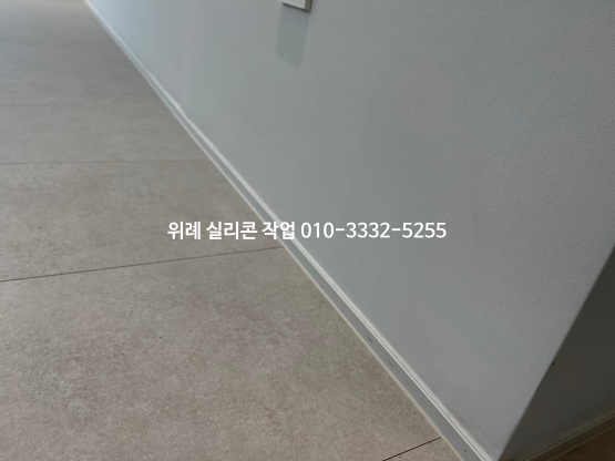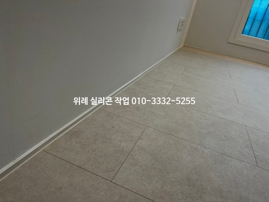 걸레받이와 마룻바닥 테두리 부분은 어울리는 실리콘 색으로 보기 좋게 마감을 해드렸습니다.