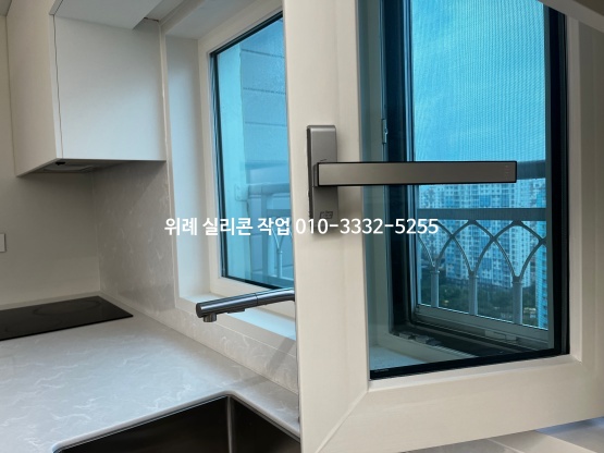창틀 유리 실리콘은 틈 간격에 맞춰 보기 좋게 실리콘 쏘고,