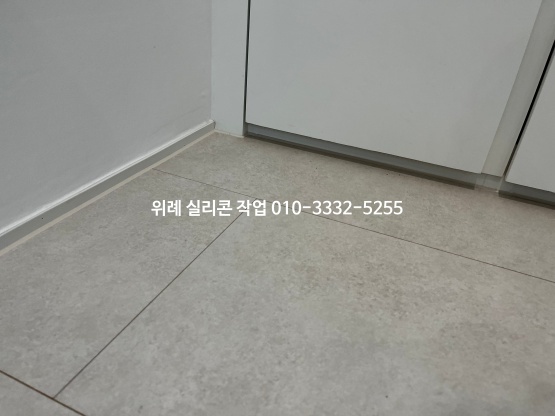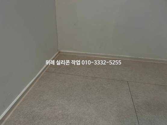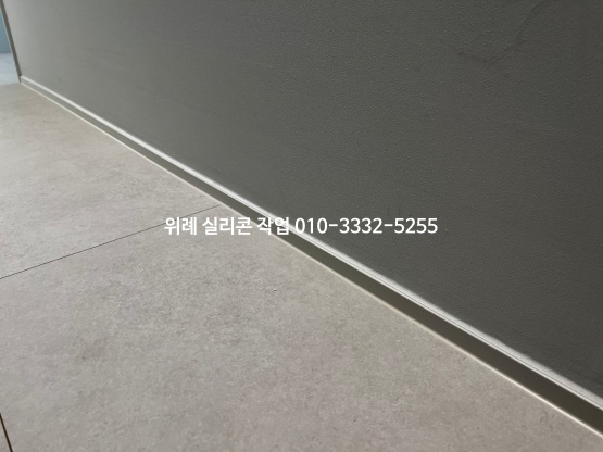 걸레받이와 마룻바닥 테두리 부분은 어울리는 실리콘 색으로 보기 좋게 마감을 해드렸습니다.