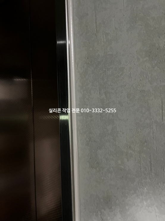 벽면과 엘리베이터 테두리가 만나는 틈 사이 보기 좋게 작업