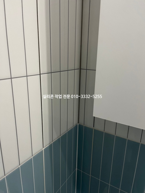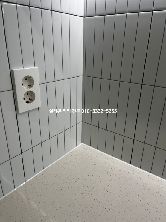 타일과 타일이 만나는 모서리 보기 좋게 바이오 실리콘으로 색상 맞춰 실리콘 작업