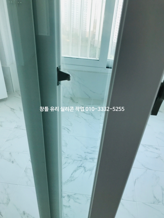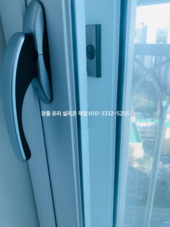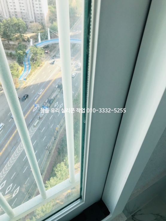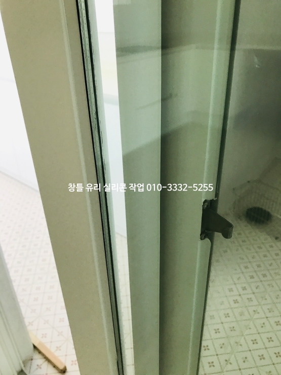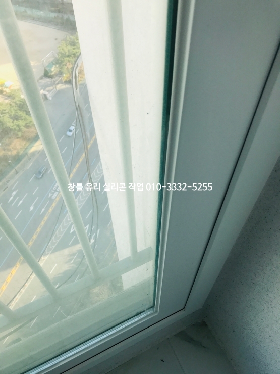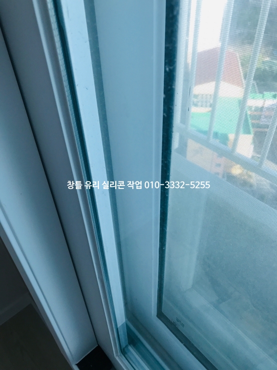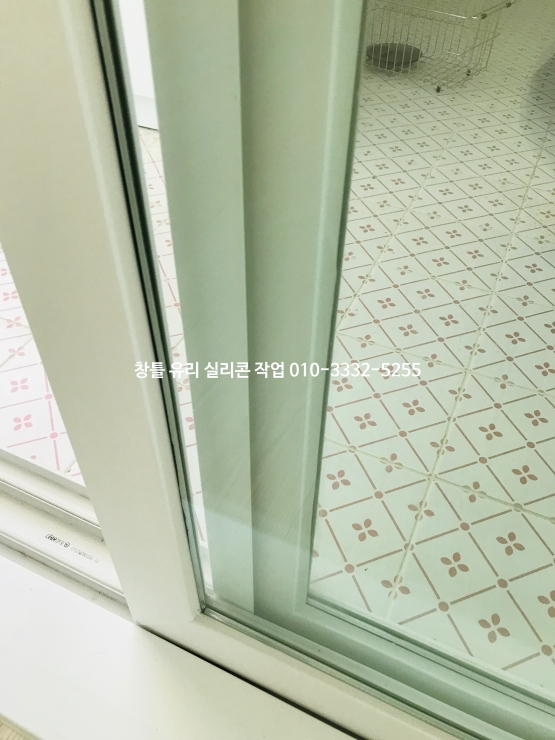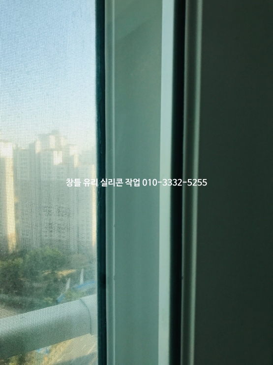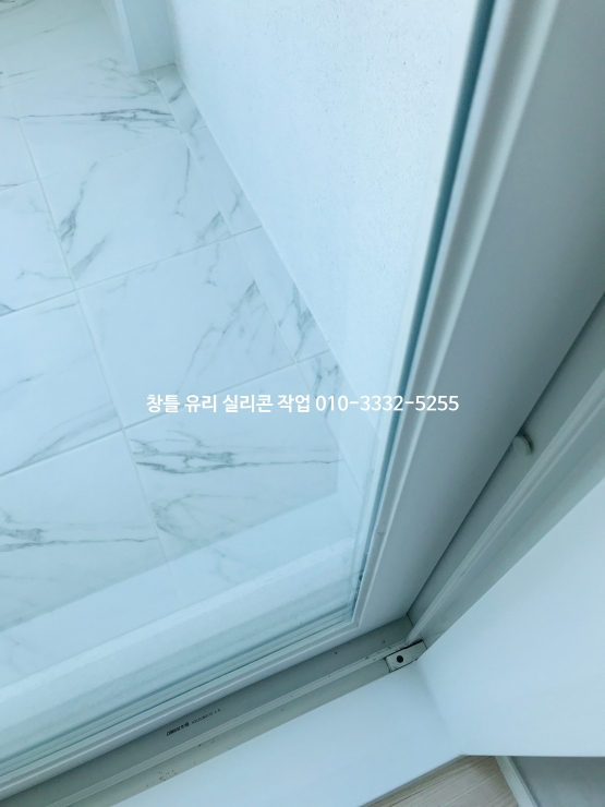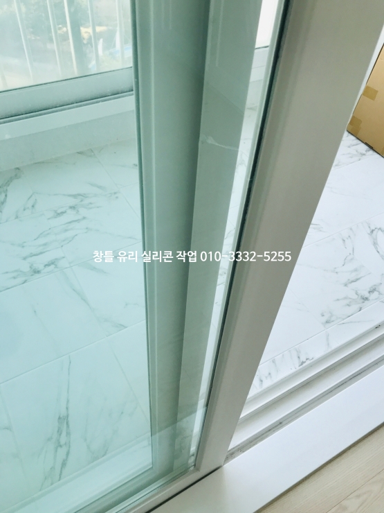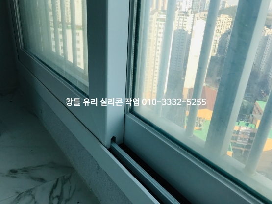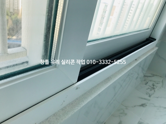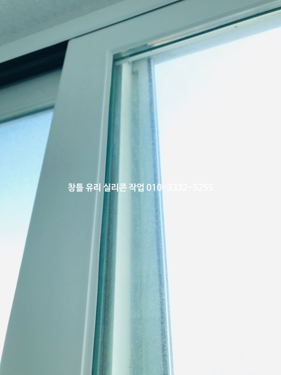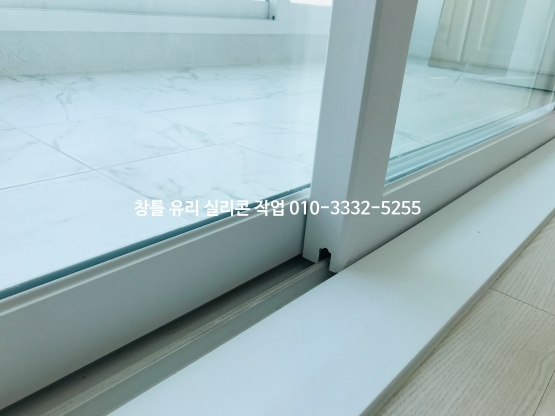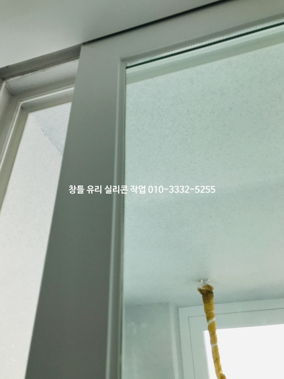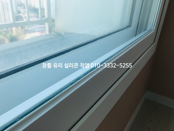 필름지 시공이 되어 있는 창틀 유리 모서리 실리콘 작업 깔끔하게 합니다.