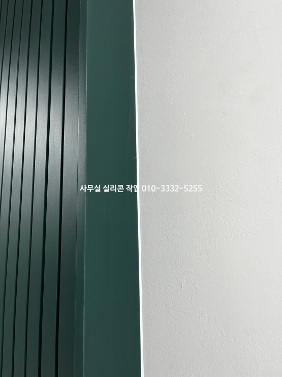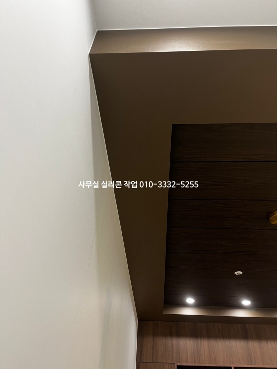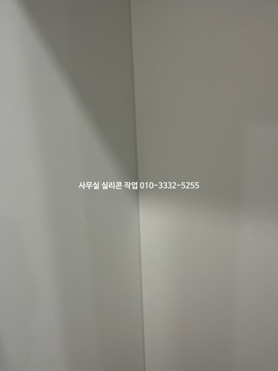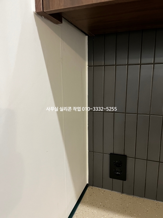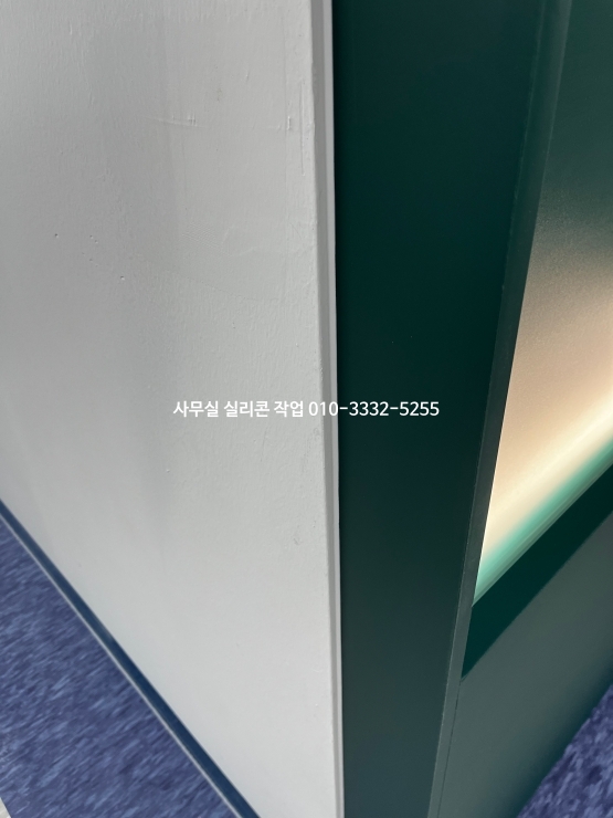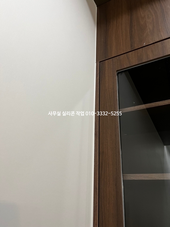 사무실 인테리어가 마무리되어 있는 현장 실리콘 작업 사진입니다.