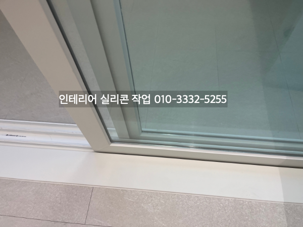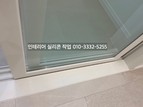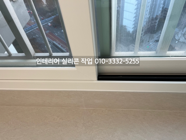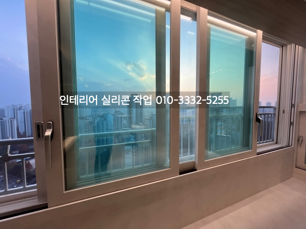 필름지 색상에 어울리는 실리콘 색상으로 거실 창틀 유리 실리콘 작업