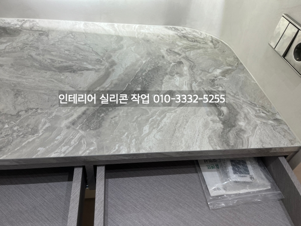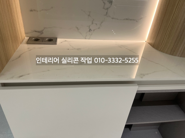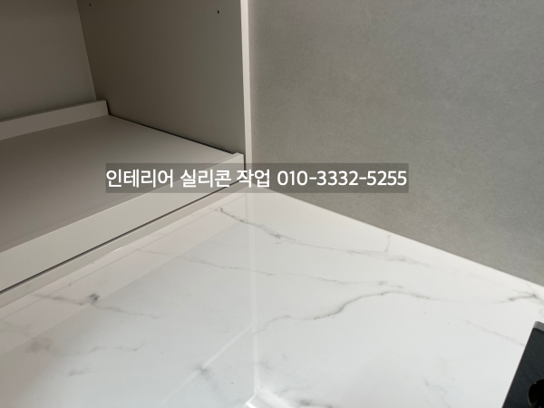 가구 상판과 벽면 모서리 실리콘 마감