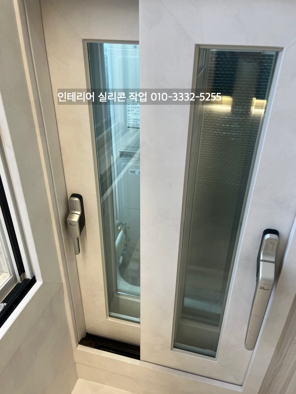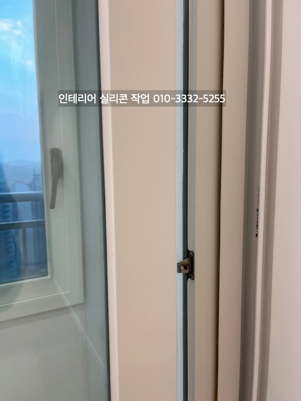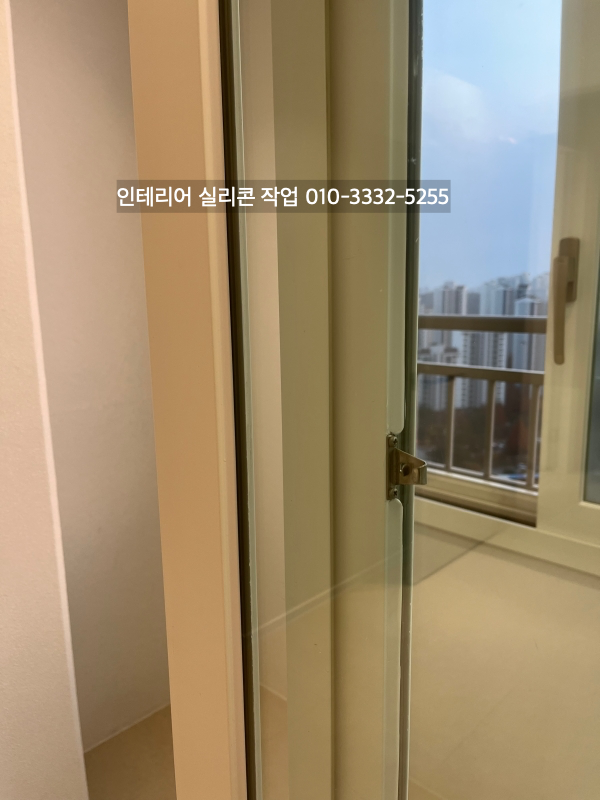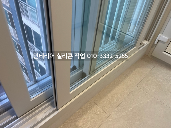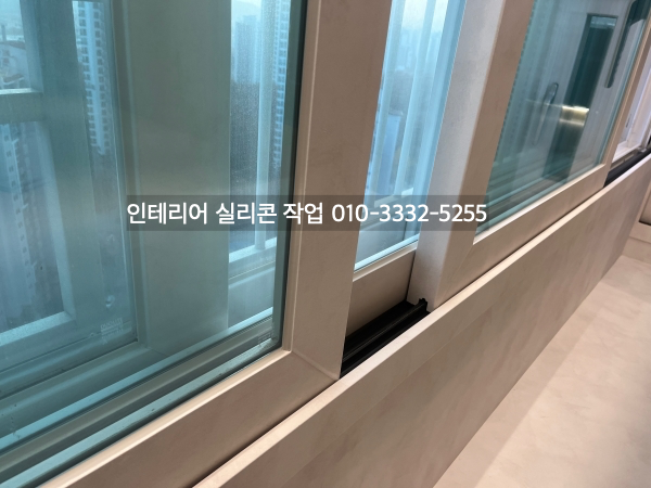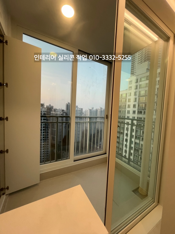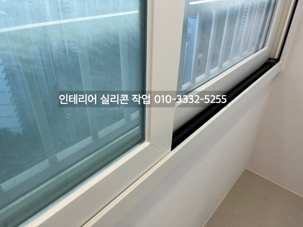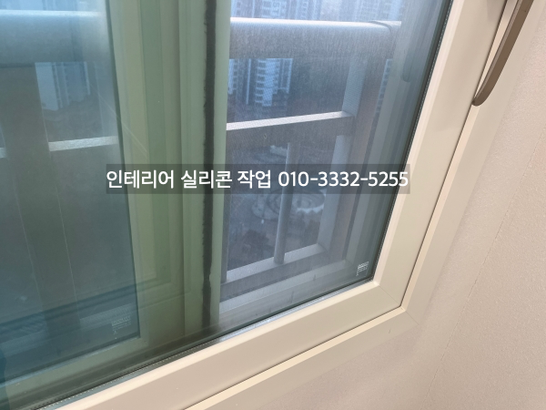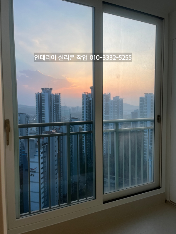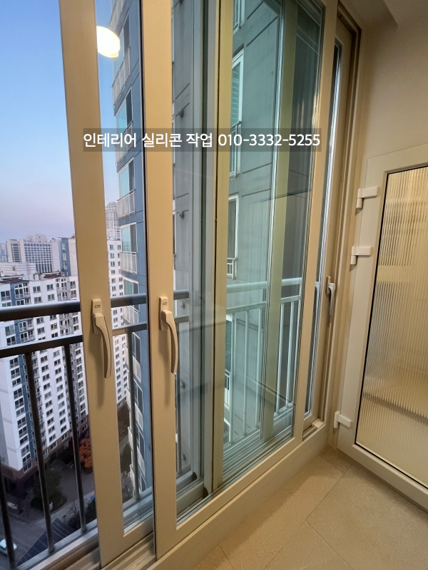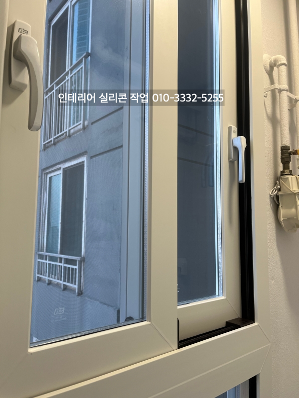 발코니와 방 창틀 새시 유리 실리콘도 실리콘 작업을 하고