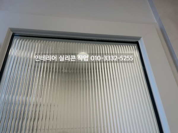 필름지 색상에 어울리는 실리콘 색상으로 거실 창틀 유리 실리콘 작업