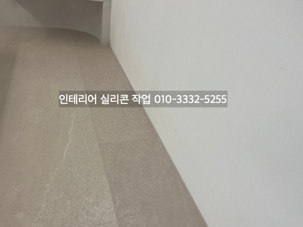 벽 도배지와 마루 바닥이 만나는 모서리 어울리는 색상으로 실리콘 마감 작업