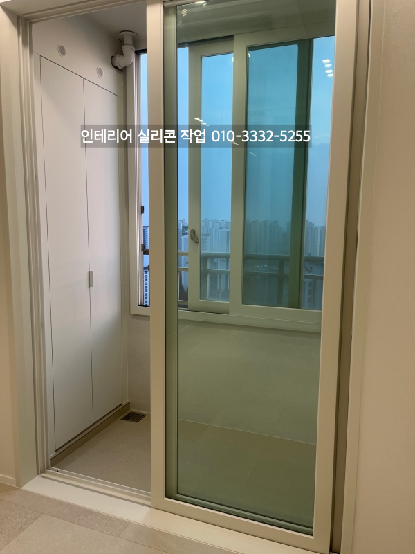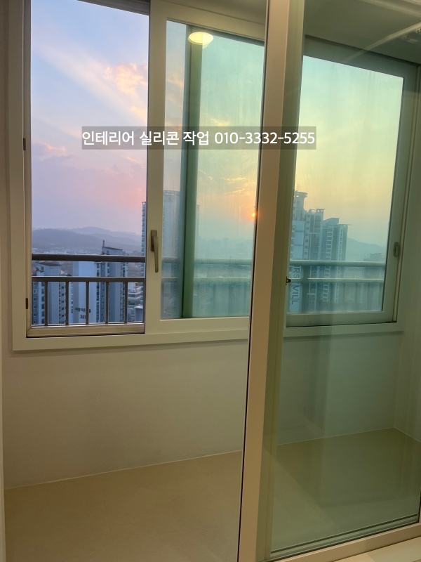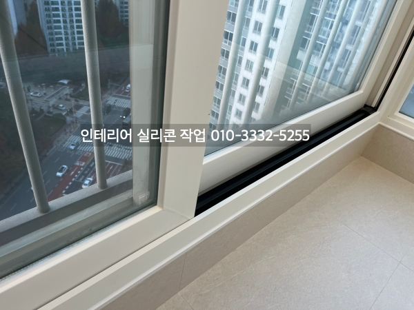 발코니와 방 창틀 새시 유리 실리콘도 실리콘 작업을 하고