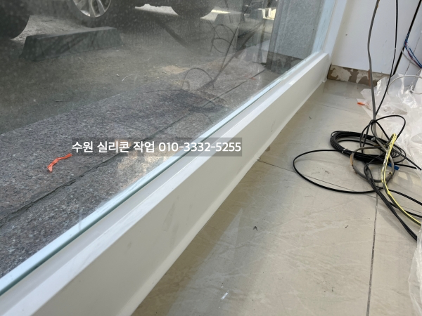 수원 상가 걸레받이, 창틀 유리 실리콘 작업