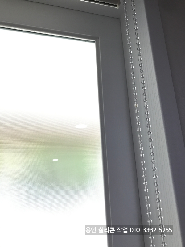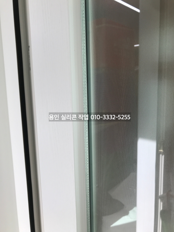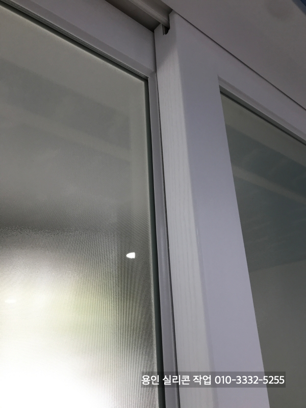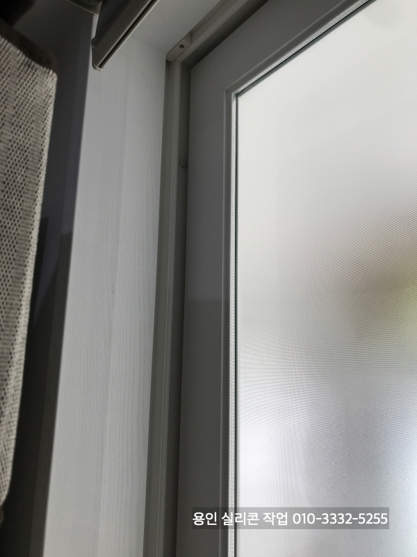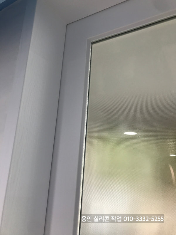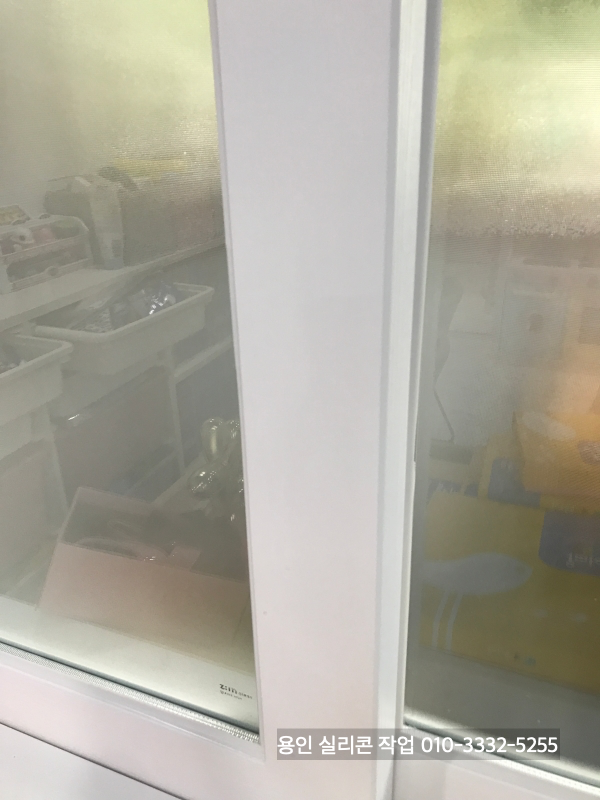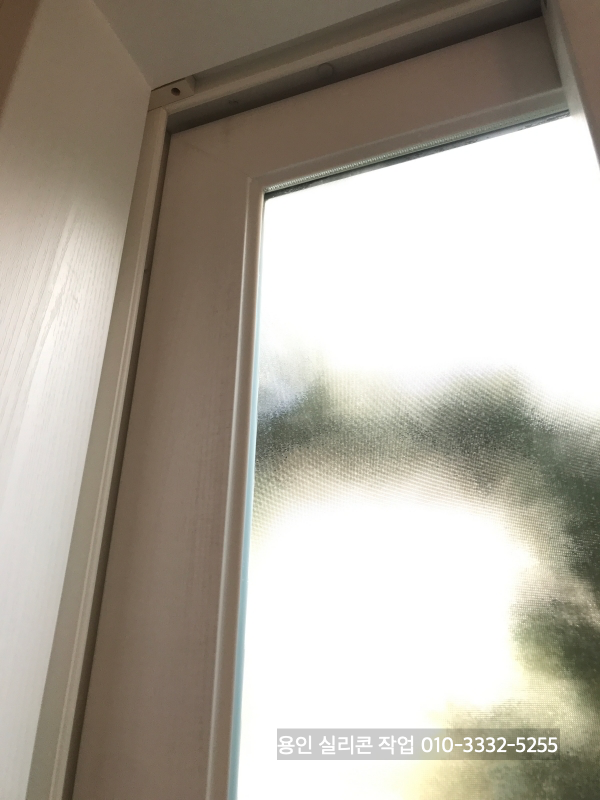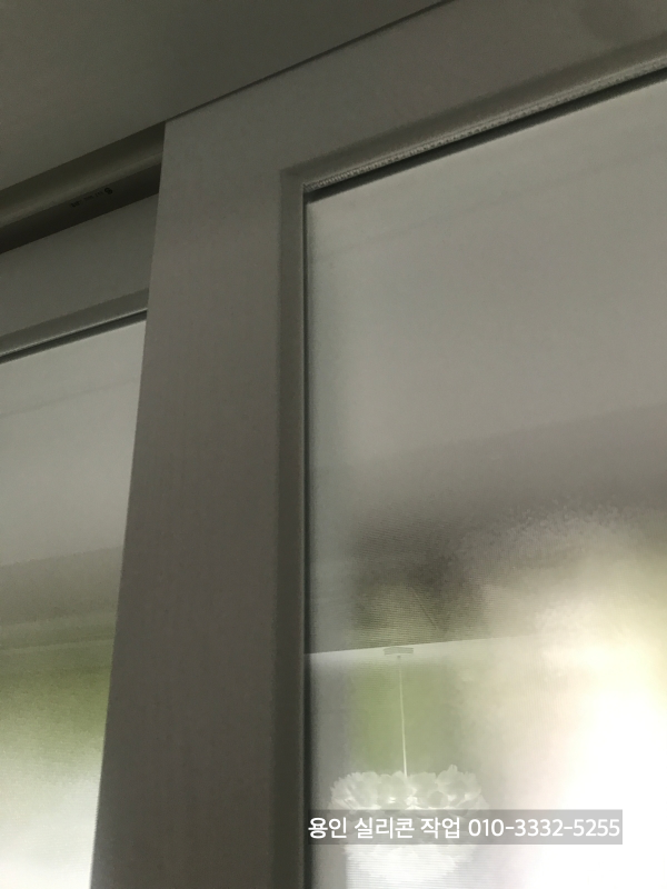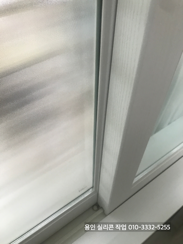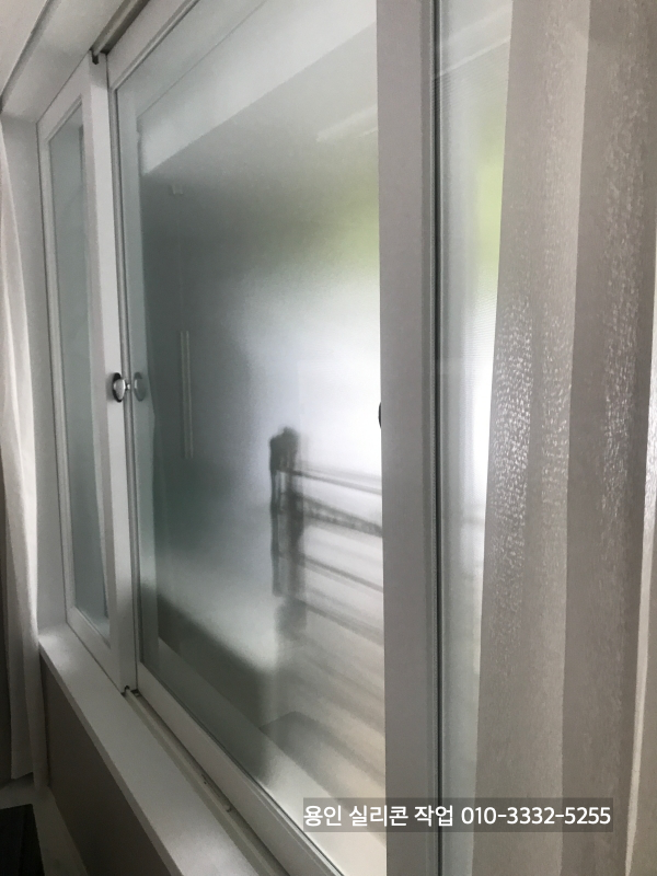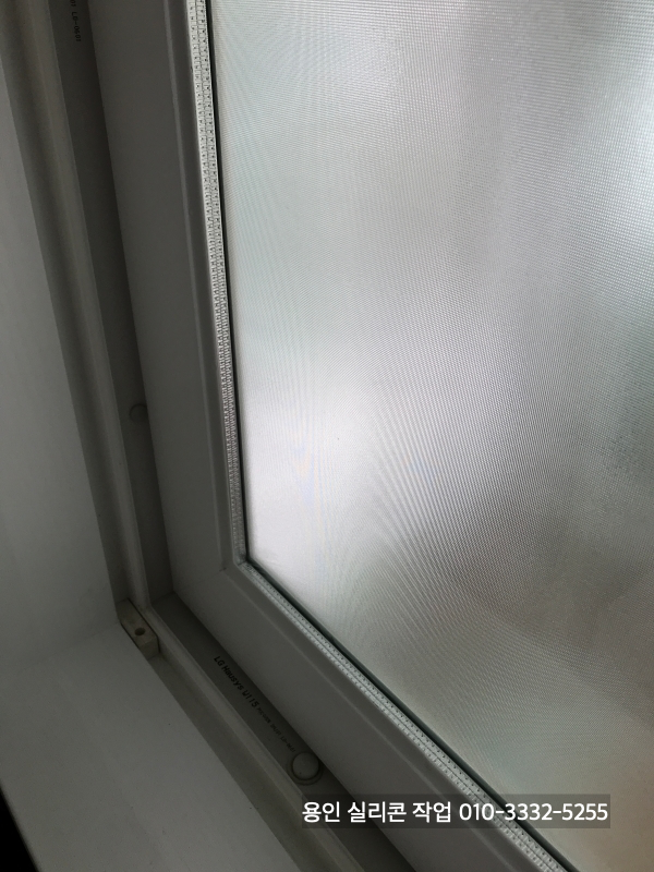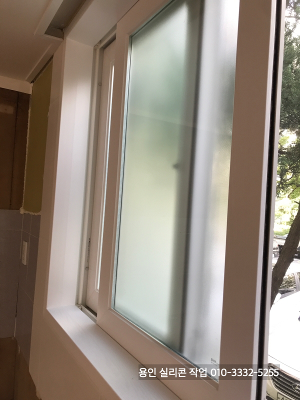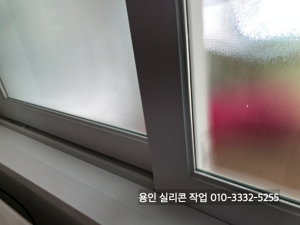 용인 필름지 시공이 되어 있는 창틀 유리 실리콘 작업