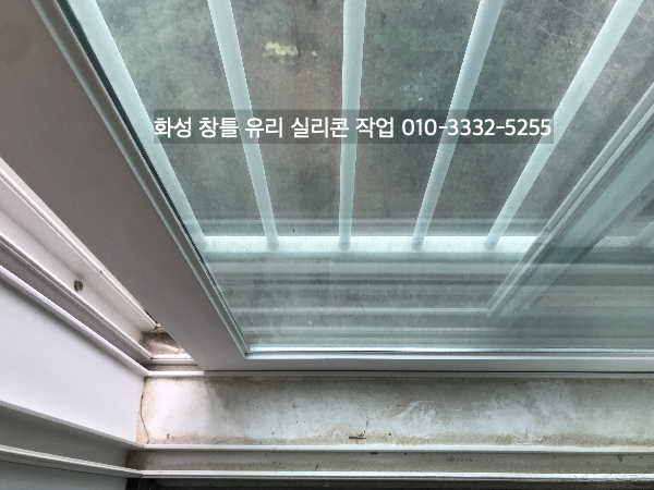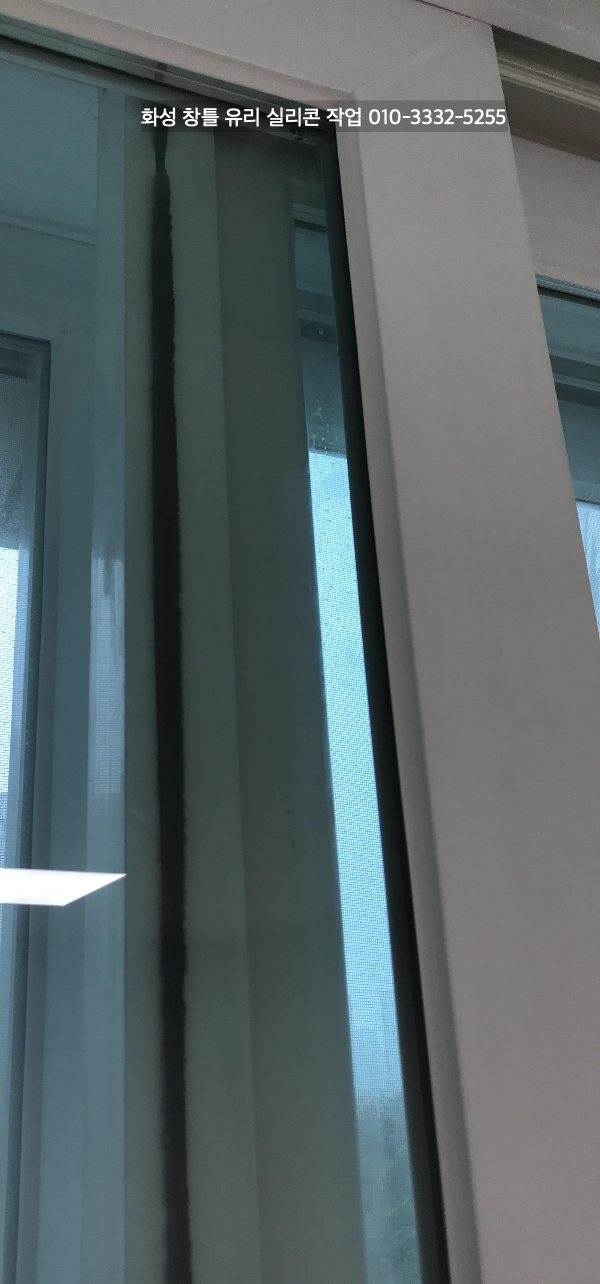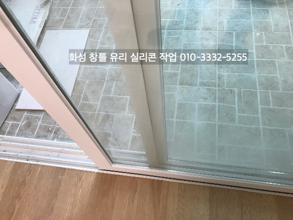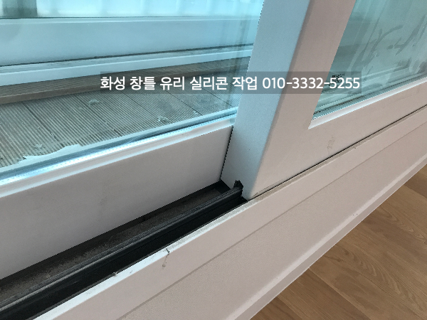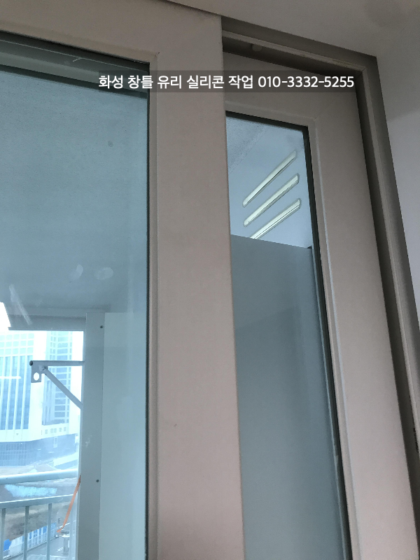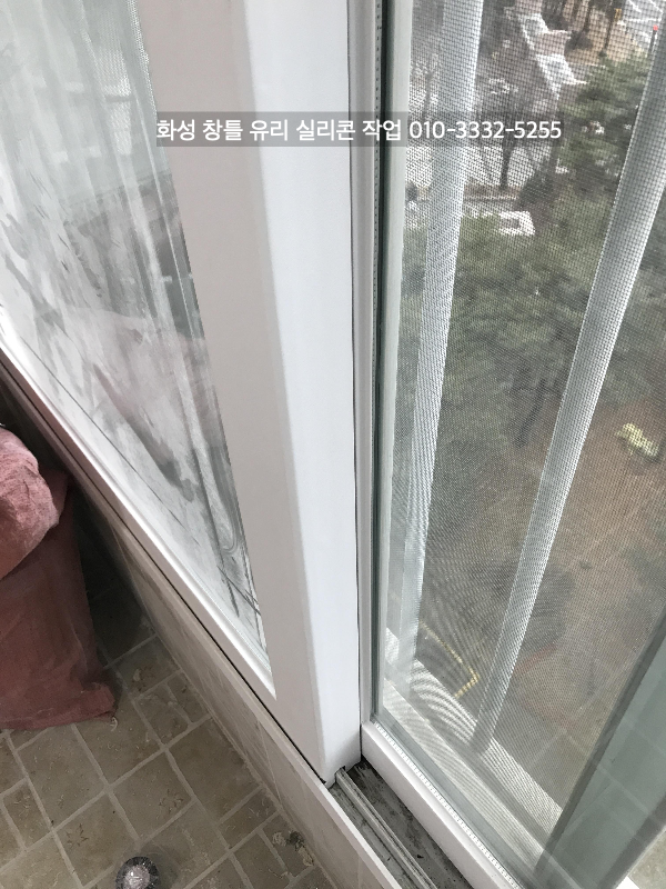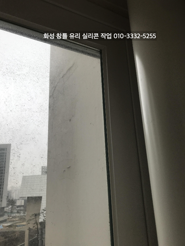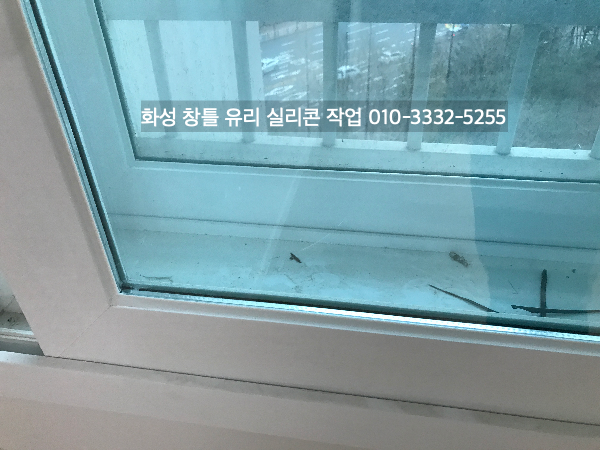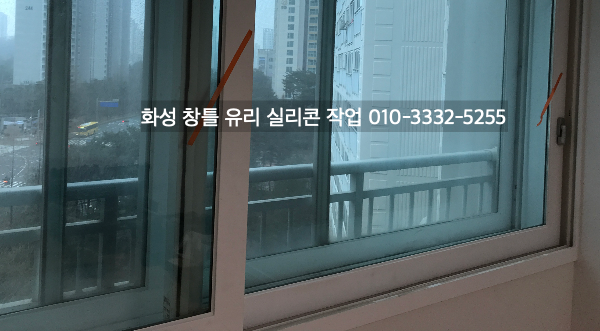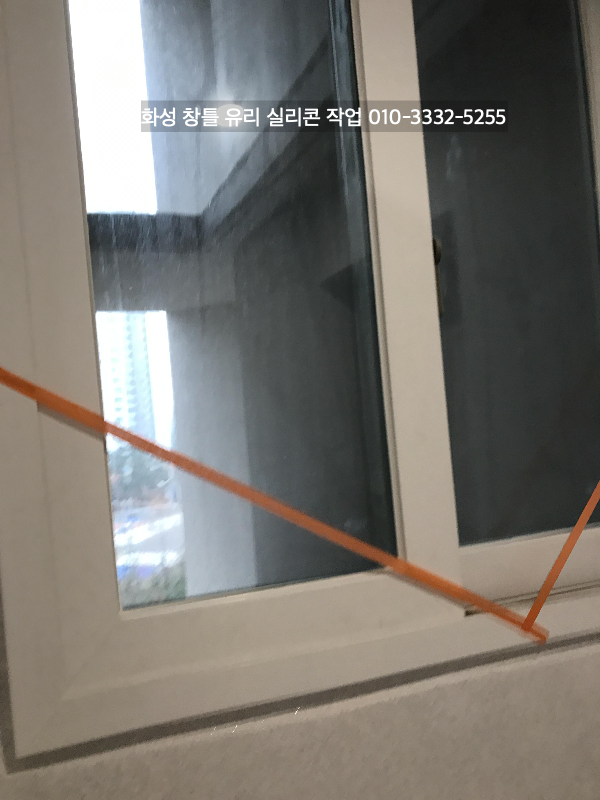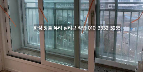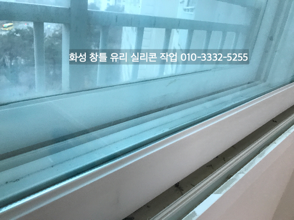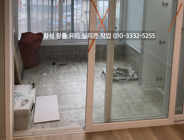 화성 아파트 인테리어 중인 현장 창틀 유리 실리콘 작업