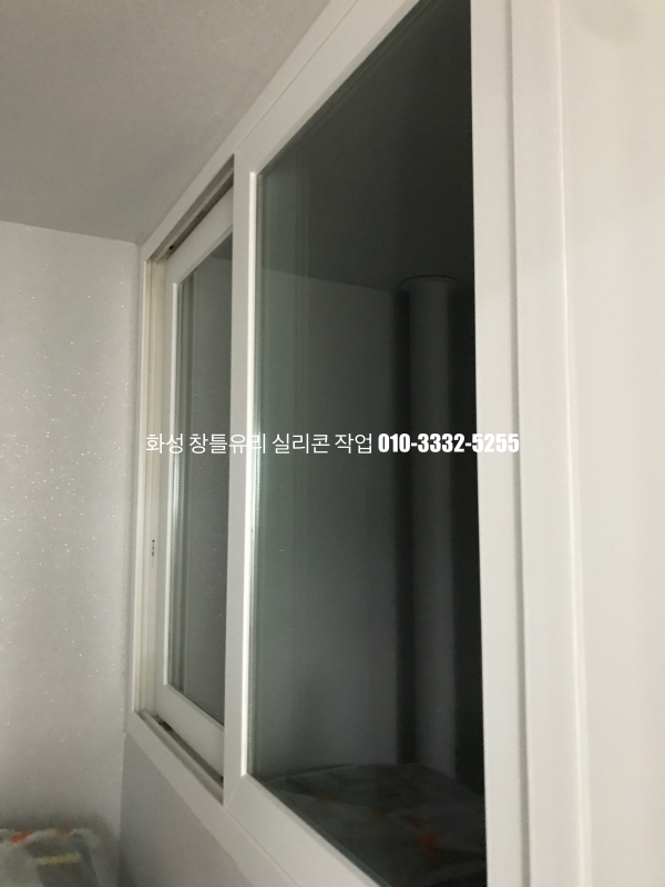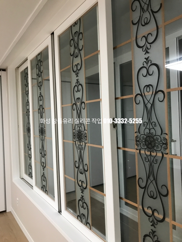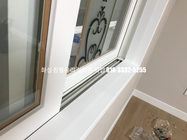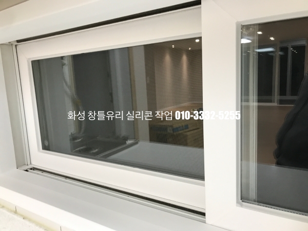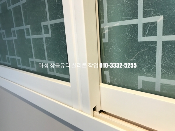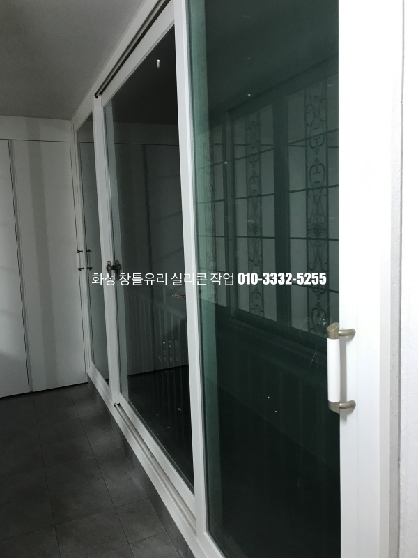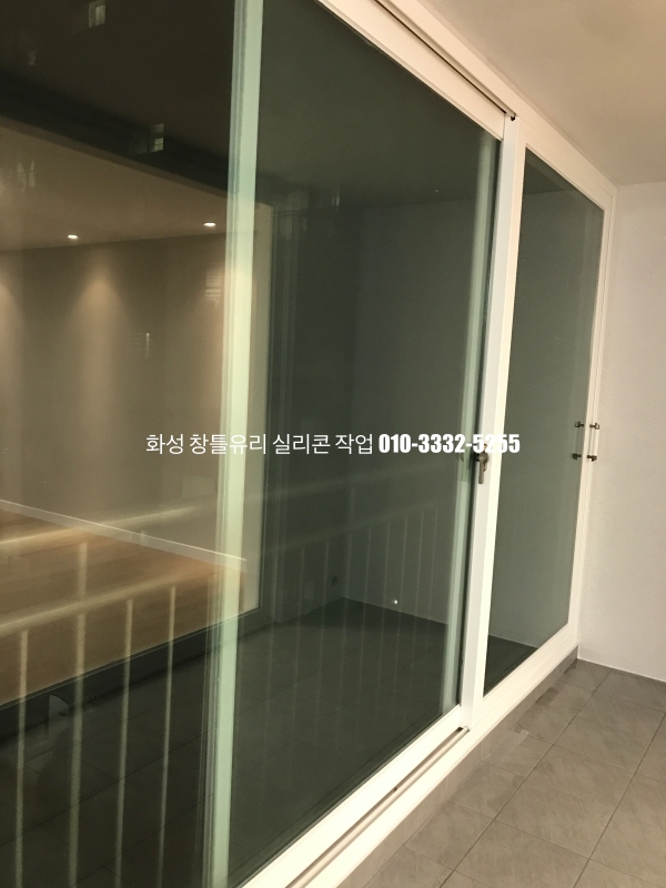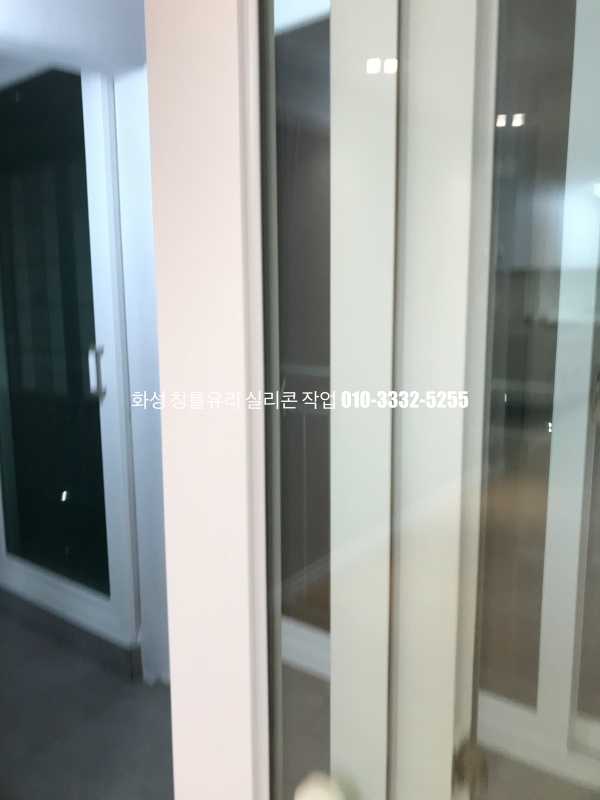 화성 실리콘 작업 : 인테리어가 마무리되어 있는 아파트 유리 실리콘 작업