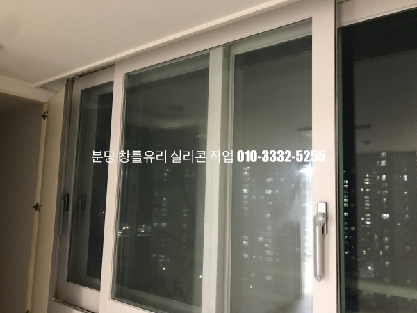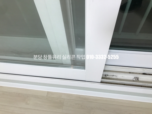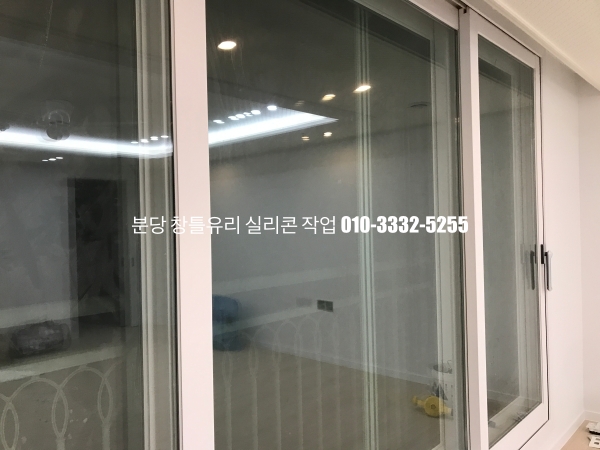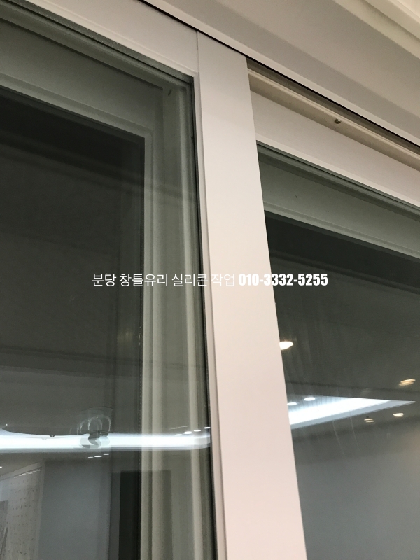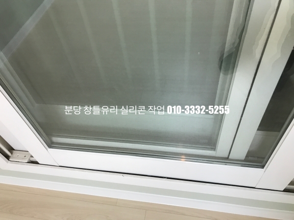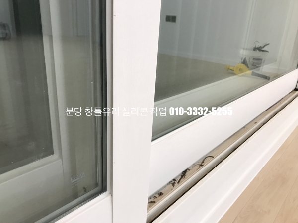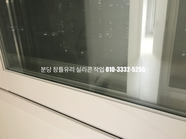 분당 아파트 창틀 유리 실리콘 작업 : 필름지 시공이 되어 있는 인테리어 현장 실리콘 마감