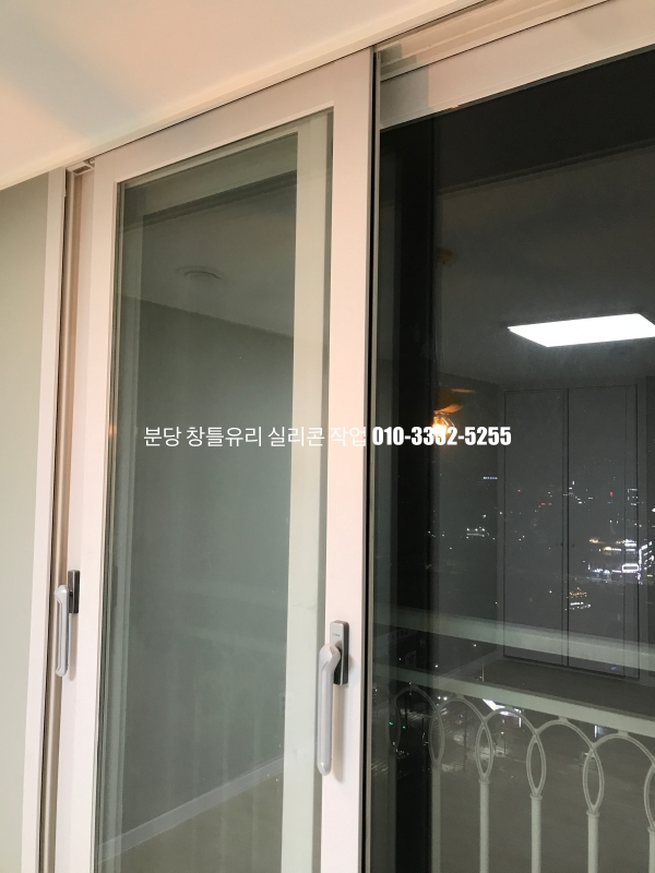 거실 새시 유리 실리콘 작업을 하고