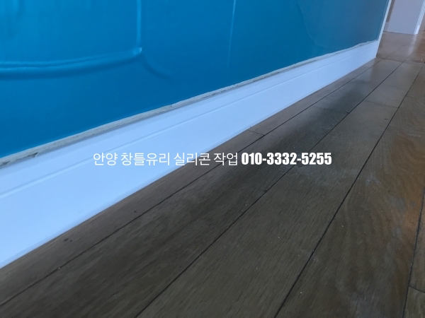 걸레받이와 마루 바닥이 만나는 모서리 실리콘 마감