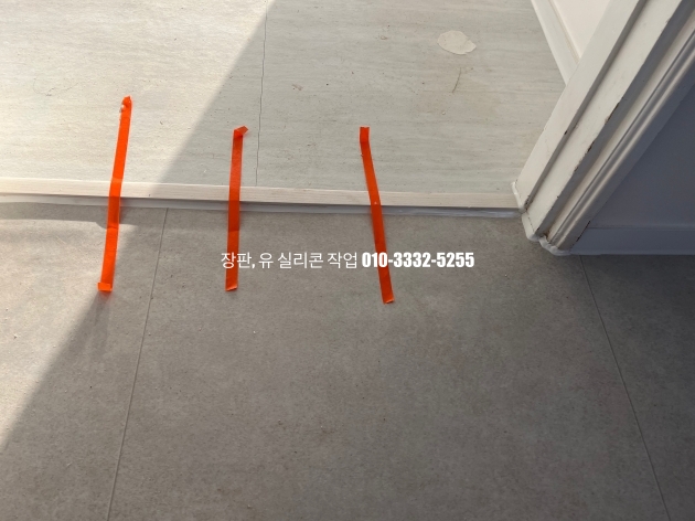 문틀과 장판 만나는 곳 실리콘 마감 사진