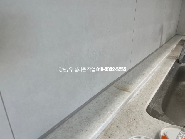 주방 벽 타일과 싱크대 상판 만나는 모서리 바이오 실리콘으로 색상 맞춰 작업하고 마무리했네요.