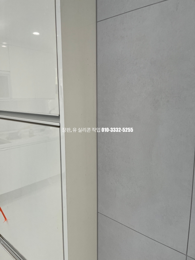 싱크대 상부장과 천정이 만나는 틈 사이 실리콘 마감