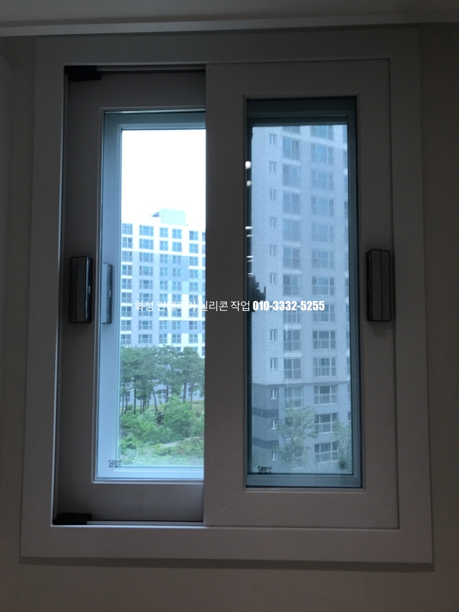 세 번째 방 샤시 유리 실리콘 시공 사진