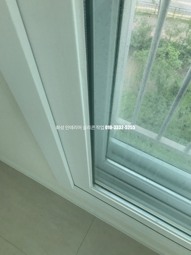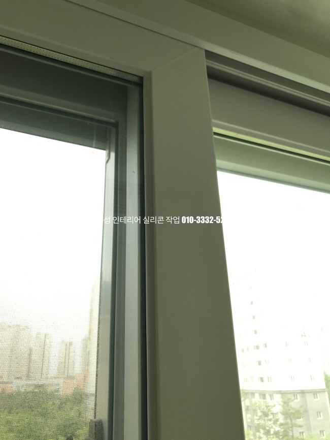 거실 창틀 유리 실리콘 작업 사진